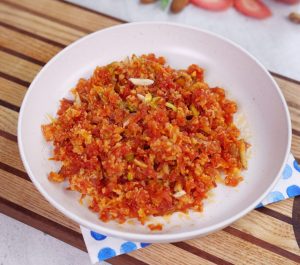 -In a bowl,grate carrot (1 & ½ Cup) with the help of the grater.