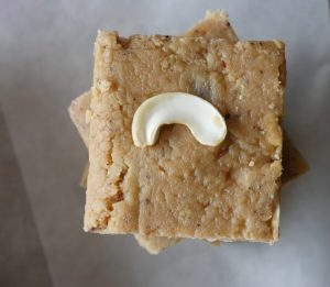 Kaju sa decorate karein aur pieces mein cut ker lein.