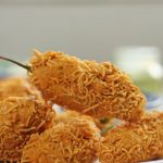 -In a wok,heat cooking oil & fry on low flame until golden & crispy (makes 10-12).