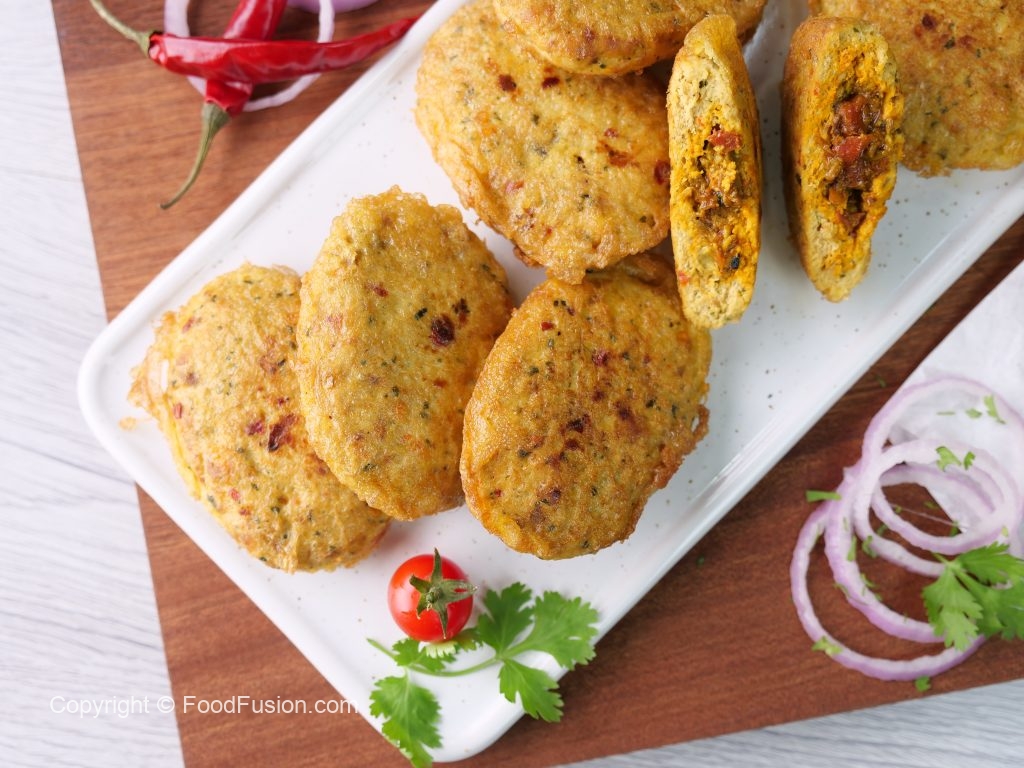 Grease hands with oil,take a mixture (55g),make a ball & flatten on your palm,add mixed pickle (1 tsp),cover properly & make kababs of equal sizes (makes 10).