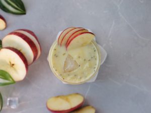 -In a large bowl,add ice cubes,milk,prepared sugar syrup,soaked basil seeds,apples (grate with the help of grater),mix well & serve!