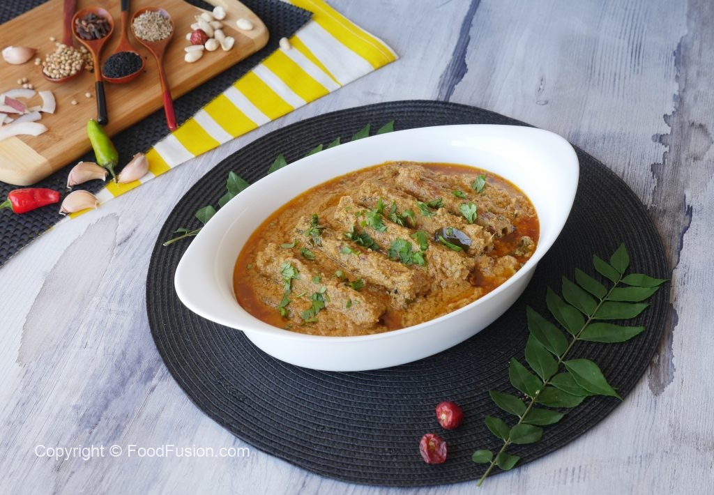 Add ginger garlic paste,salt,turmeric powder,red chilli powder,mix well and cook until oil separates (approx. 4-5 minutes).