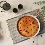 Grease 10-inch baking dish with butter,pour prepared batter,spread evenly and tap few times.