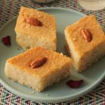 Prepare Basbousa cake with semolina & almonds: