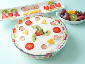 -Drizzle prepared cream yogurt sauce & mix gently.