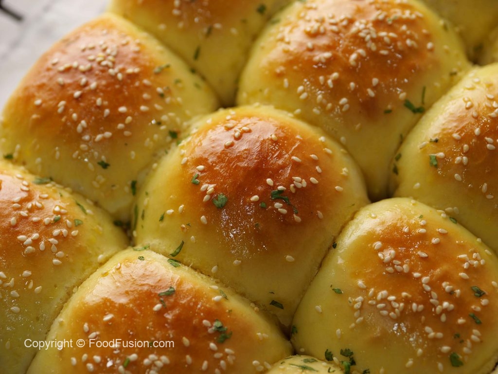 -Stuffed buns par brush karein aur til chirak dein (makes 16).