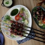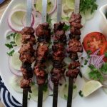 Serve Beef afghani boti with salad, raita & green chilli sauce.