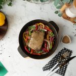 Stir fried vegetables aur beef steak rakh dein aur upper sa peppercorn sauce dal ker serve karein!