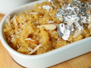 Turn off the flame,add prepared sheera and mix well.
