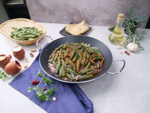 -Frying pan mein cooking oil aur stuffed bhindi dal ker halki acch per 12-15 minutes kliya paka lein & side per rakh dein.
