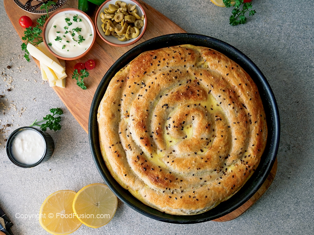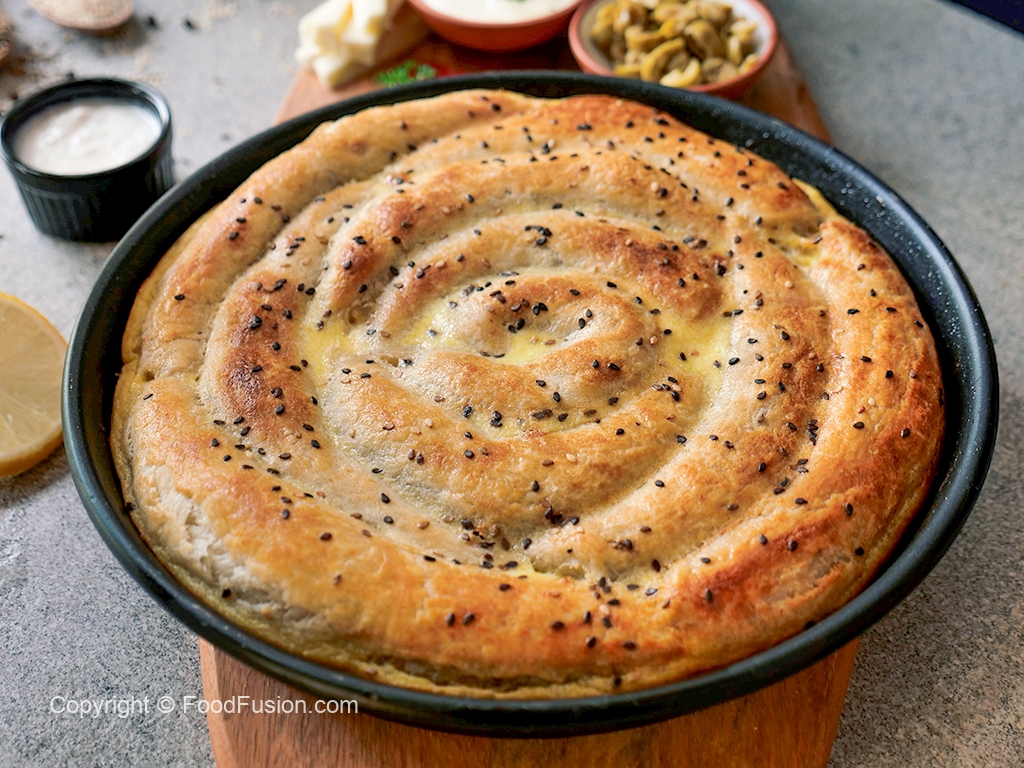 Add remaining egg & yogurt mixture,spread evenly and sprinkle black & white sesame seeds.