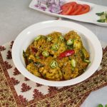 -In a wok,add cooking oil,dry red chillies,curry leaves & prepared masala,mix well & cook on low flame until oil separates (8-10 minutes).