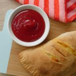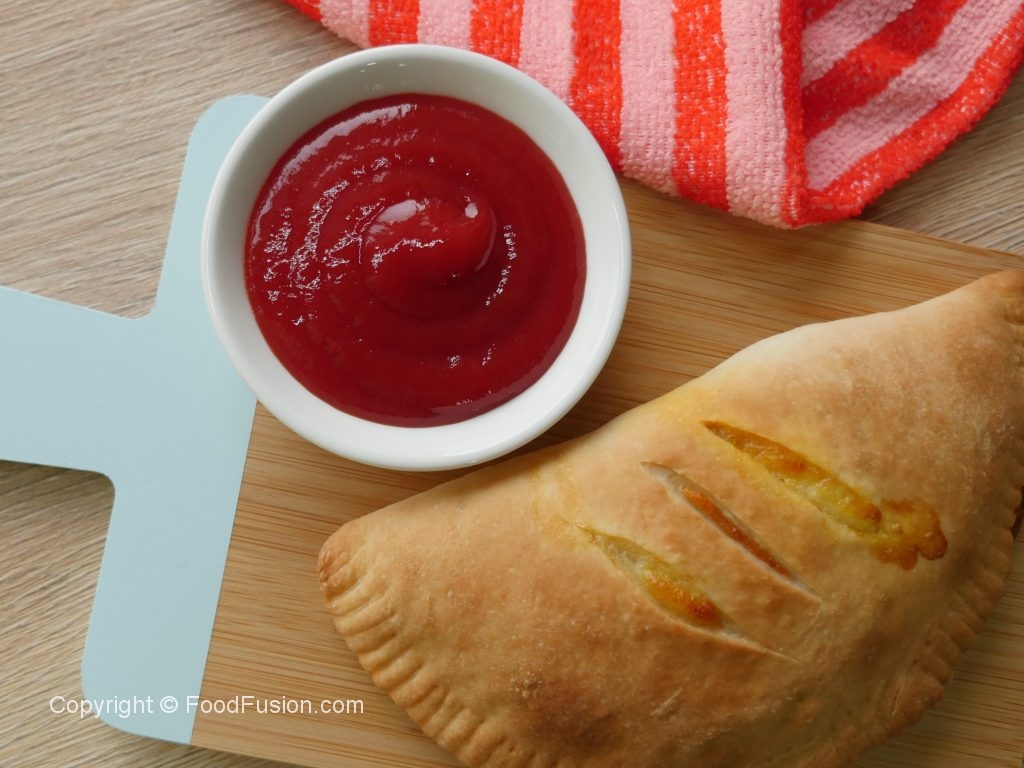 Baking dish per tayyar calzone rakh ker oil sa grease ker lein aur knife ki madad sa surface per marks laga lein (makes 4).