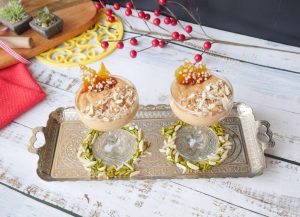 In serving dish,add caramel firni,garnish with almonds,caramel crunch & serve!