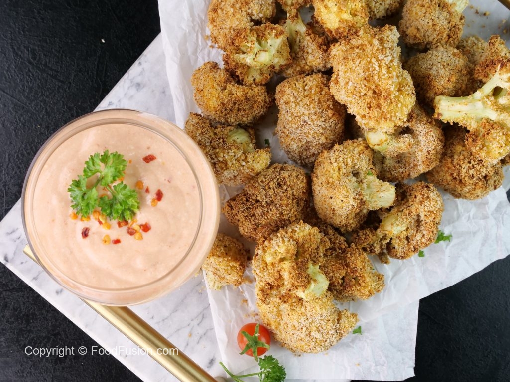 Prepare Crispy Cauliflower Bites with Yogurt Dip: