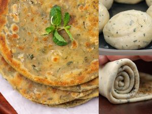 Dough ko dubara ghond lein,haath ok oil sa grease karein aur chota dough la ker ball bana lein,atta chirak dein aur rolling pin ki madad sa bail lein.