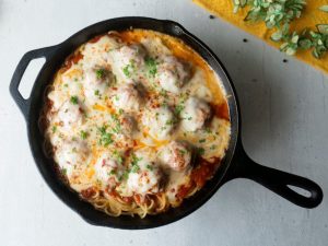Tayyar meatballs ko sauce ka saath dal dein,cheddar cheese,mozzarella cheese aur lal mirch crushed dal dein aur dhak ker halki ancch per cheese melt ho janay tak paka lein (4-5 minutes).