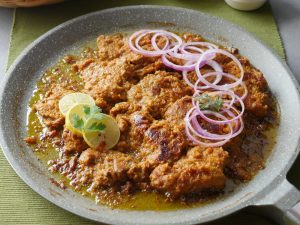 -Cooking oil dal dein,chulha on karein aur rang tabdeel ho janay tak ache tarhan mix ker lein phir dhak ker halki ancch per chicken gul janay tak paka lein phir tez ancch per sukh janay tak paka lein.