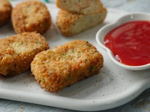 Grease hands with oil,take a mixture and make a nuggets shape (makes 18-20).