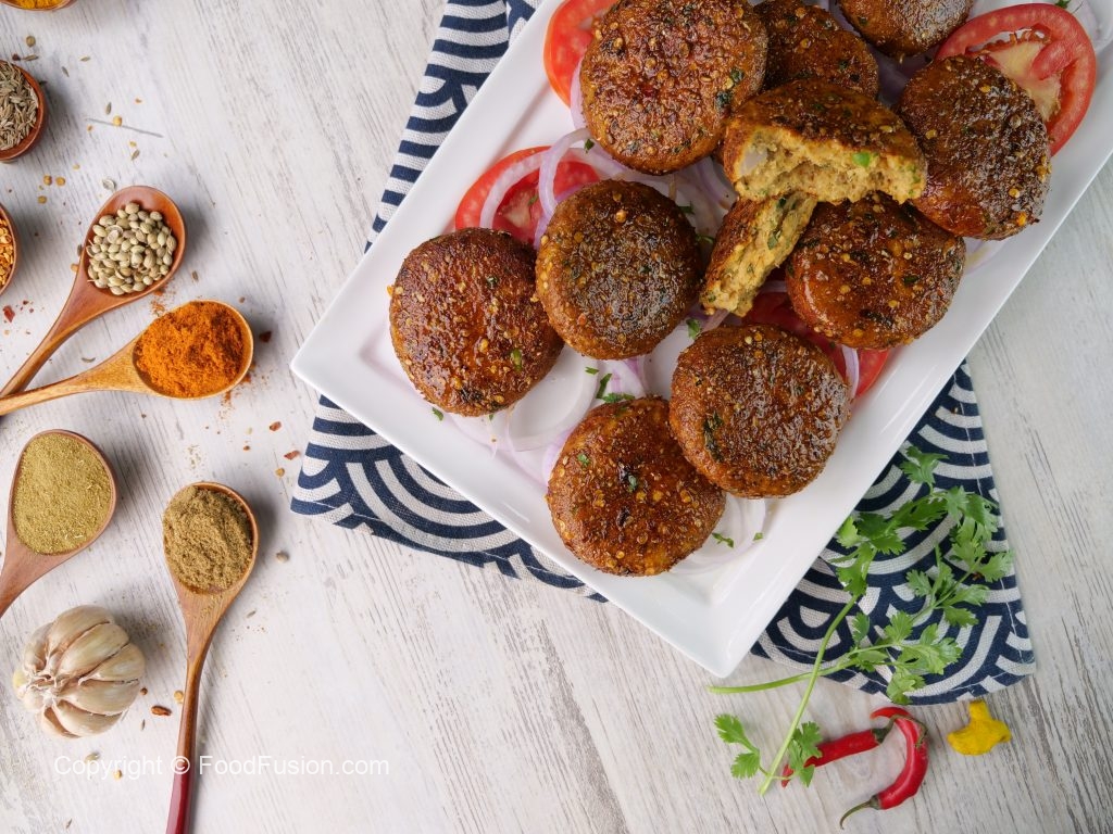 -Frying pan mein cooking oil garam karein aur kabab ko dono sides sa golden-brown ho janay tak fry ker lein (makes 15).