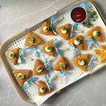 -Take out potato mixture tray from freezer & cut into triangle shape.