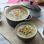 Garnish with shredded chicken,black pepper crushed,corn kernels,green onion leaves,soy sauce & serve!