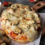 -Add & spread pizza sauce,add cooked chicken,onion,tomato,pickled jalapenos,mozzarella cheese,cheddar cheese,dried oregano & red chilli crushed (makes 6).