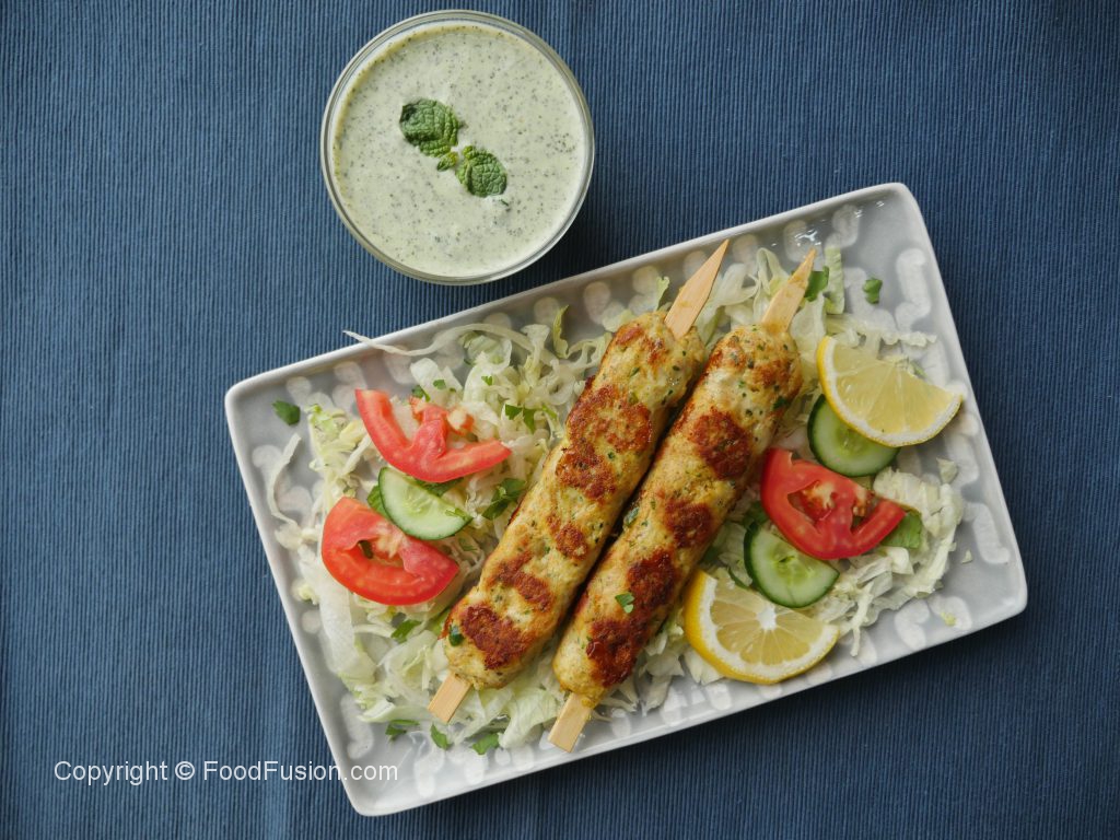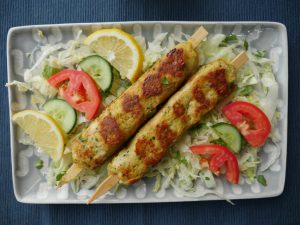 Haathon ko oil sa grease karein,mixture ko lein aur kabab bana ker skewers per laga lein (makes 10-12).