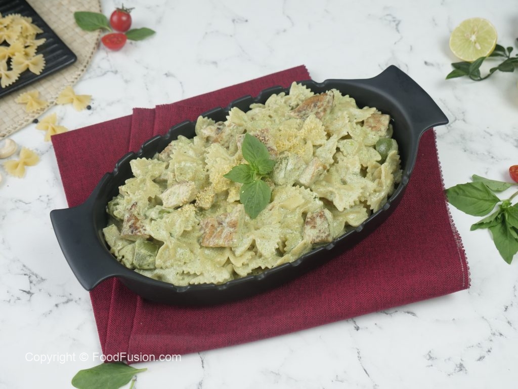 One of the best Chicken Pesto pasta recipes in signature Food Fusion Style. #HappyCookingToyou #FoodFusion #OlpersCream