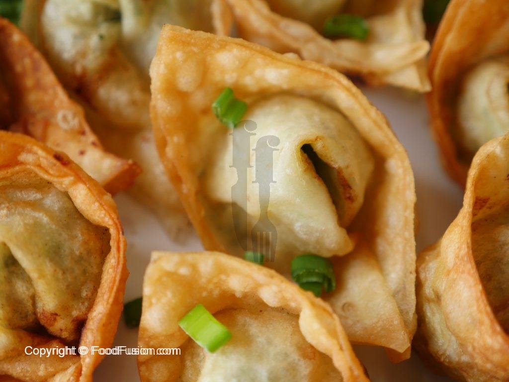 Apply egg on one side of triangle and overlap to form wonton shape (makes 25-30).