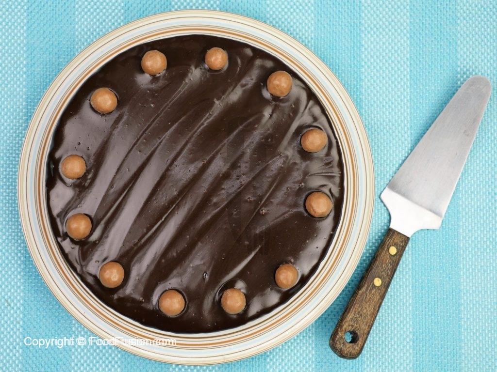 When cake is cool, apply chocolate ganache.
