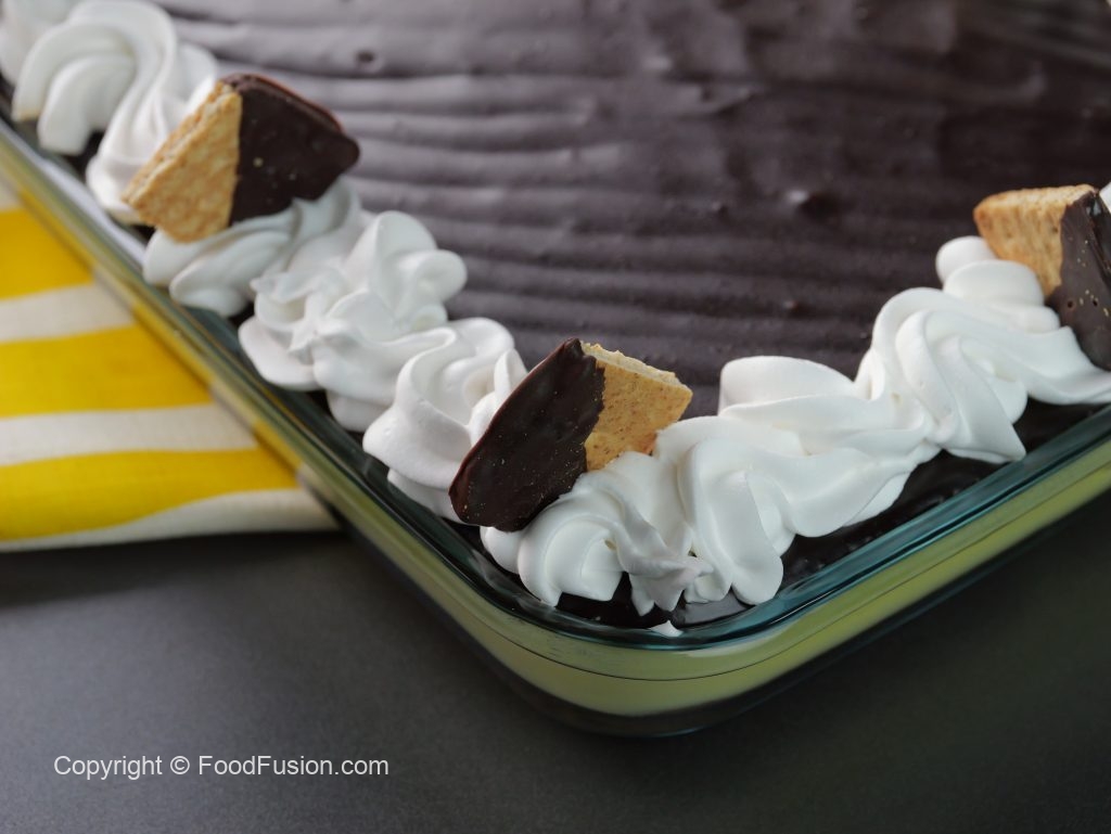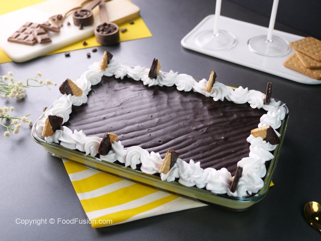 Indulge in the ultimate chocolate dessert with our layered Chocolate Eclairs Dessert. This will have everyone asking for more. #HappyCookingToYou #FoodFusion #EBM #PeekFreans #DigitalAmmi #RamazanSpecial #peekfreans #digitalmom #chocolatelovers #dessertlovers #sweettooth #yum #foodgasm