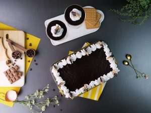 -Pipe out prepared coffee ganache on pudding layer & spread evenly.