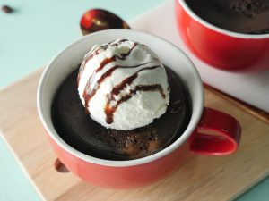 In mug,add egg,butter,lukewarm milk,vanilla essence,all-purpose flour,baking powder,caster sugar,salt, cocoa powder and mix until well combined.