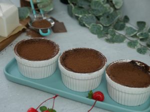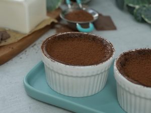 Place ramekins on a baking dish & bake in preheated oven at 200C for 15-16 minutes (makes 4).