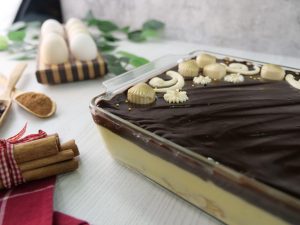 -In a serving dish,arrange churros in the bottom of the dish (substitute of churros: Pound cake).