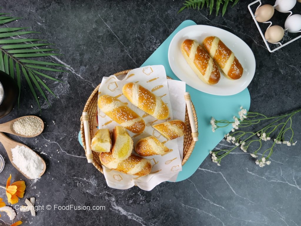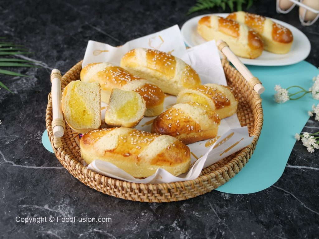 -Grease 5” x 2” oval shape mold with butter (you can use any mold of your choice) & place it on a small bun tray greased with butter,place dough inside the oval mold,cover & let it proof for 30 minutes.