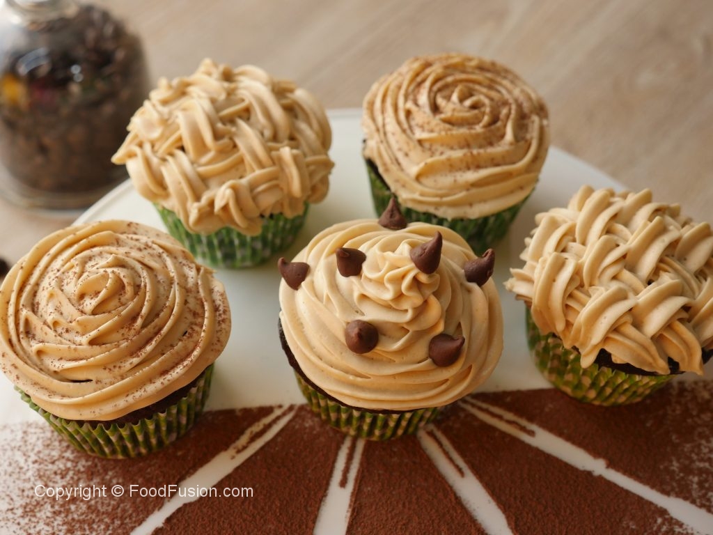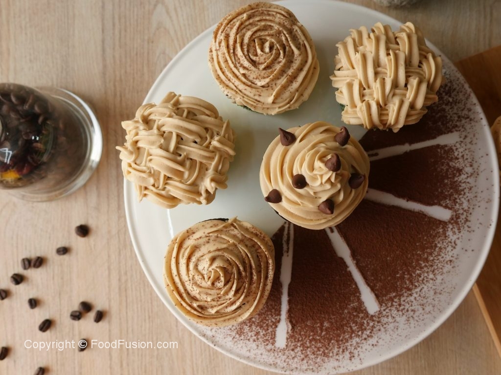 Cupcakes ko cooling rack per rakh ka thanda ker lein,jab thanday ho jayein tou piping bag mein frosting dal ker cupcakes per laga lein aur coffee or chocolate chips sa decorate ker lein.
