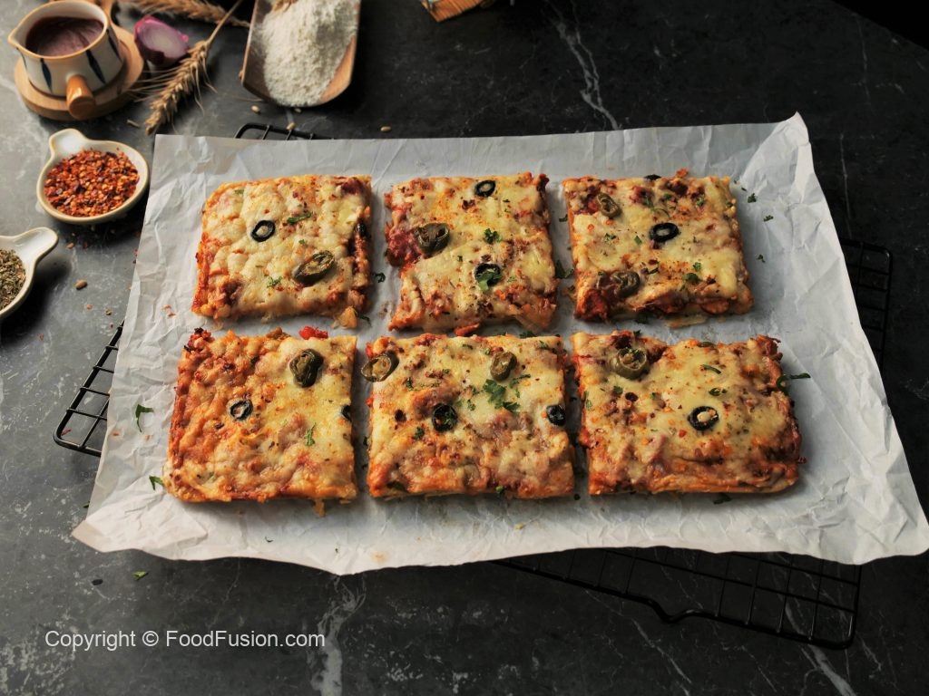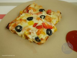 Add cheddar cheese,mozzarella cheese,black olives,pickled jalapenos,dried oregano & red chilli crushed (makes 2 pizzas).