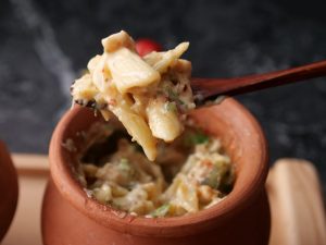 Tandoori masala aur dahi dal ker ache tarhan mix karein aur 2-3 minutes kliya paka lein aur dhak ker darmiyani ancch per gul janay tak paka lein (6-8 minutes) phir tez ancch per sukh janay tak paka lein & side per rakh dein.