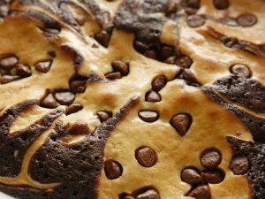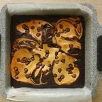 In 8 x 8 inch baking pan lined with butter paper,add prepared brownie batter and cream cheese batter and make swirls with the help of the skewer.