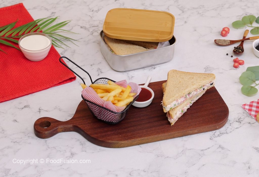 -Spread the prepared chicken mixture on bran bread slice,cut into triangles & serve with French fries or in a lunch box for kids (makes 8-10).