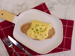 -Pan ko heat sa hata lein jab anday set ho jayein magar egg ka little liquid reh jaye.