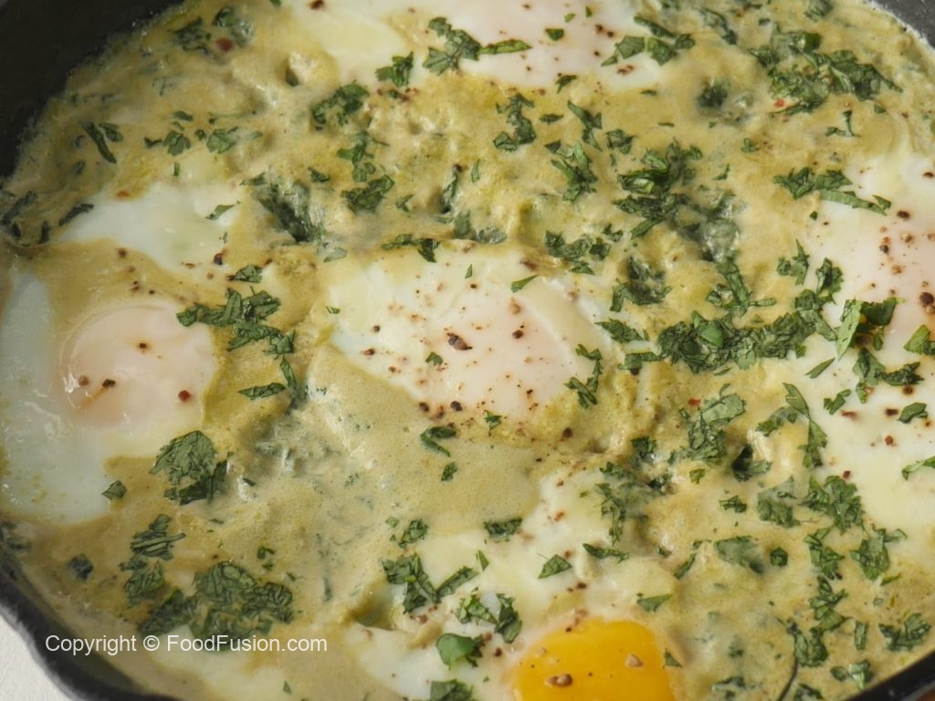 Ek,ek ker ka anday shamil karein,kali mirch crushed,cheddar cheese aur hara dhania dal ker dhak dein aur halki ancch per 2-3 minutes kliya paka lein & serve karein!