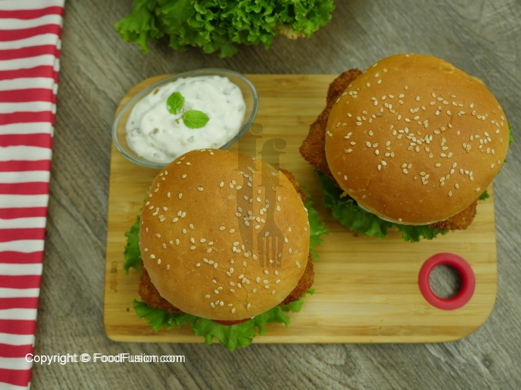 Make restaurant quality fish burger at home. Try our Crispy Fish burger recipe and have a fun time with family. #HappyCookingToYou