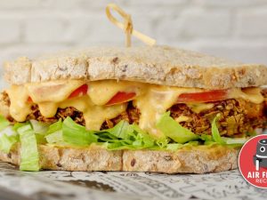 On burger bun,place lettuce leaf,tomato slices,crispy fish fillet,herbed mayo sauce and top with bun & serve.