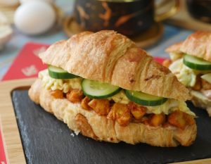 Croissant breakfast sandwich ko chai ka saath serve karein!