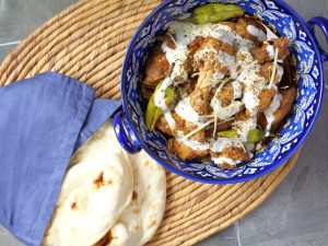 -In a serving dish,add chicken karahi,yogurt & sprinkle reserved spice mix.