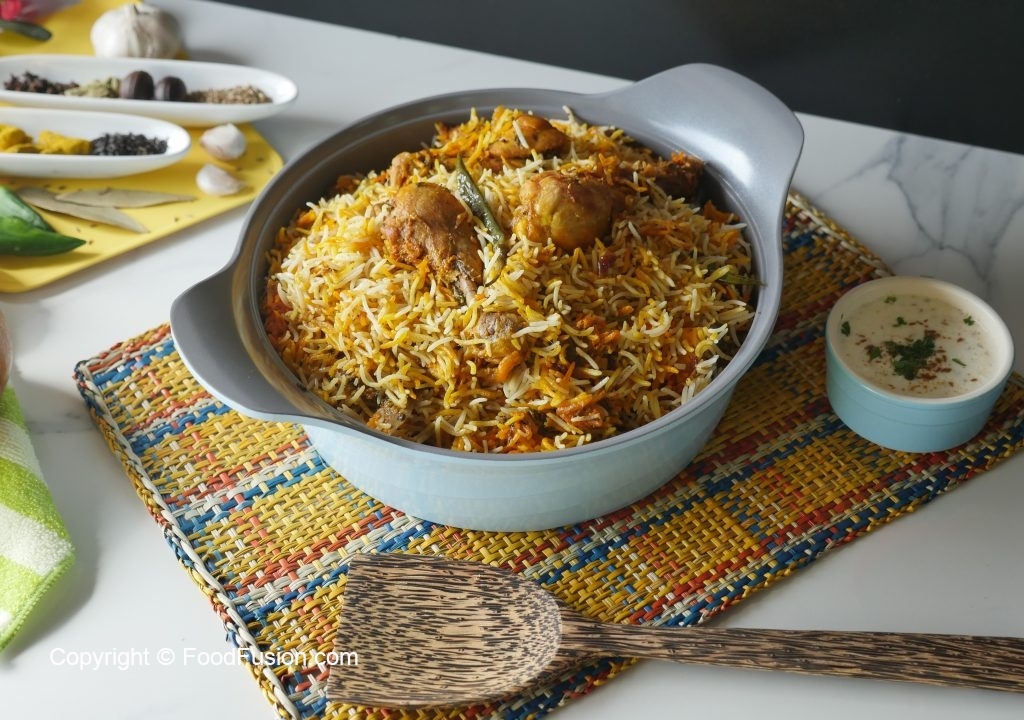 Fried pyaz,tayyar dahi,boiled chawal ki half quantity,reserved tayyar spice mix,baqi bachay hoye chawa aur cooking oil dal ker dhak dein aur halki ancch per 18-20 minutes kliya steam cook ker lein & serve karein!