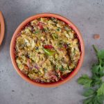 -In mortal & pestle,add cooked mixture,fresh coriander & crush coarsely.